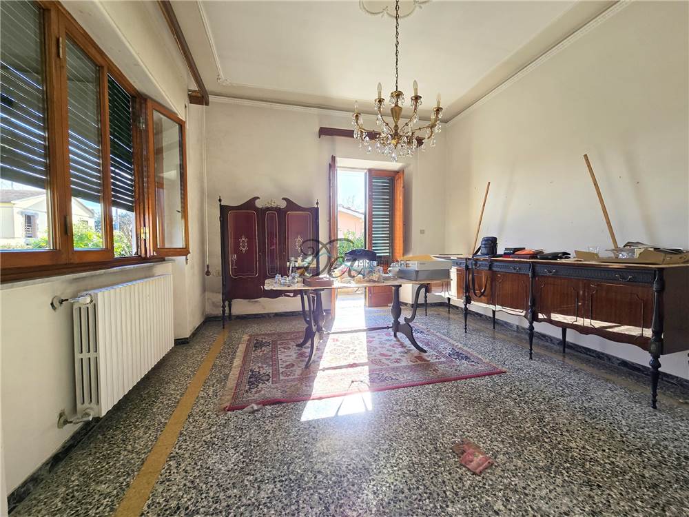 In a quiet residential area, this charming single-story Viareggina-style villa measures approximately 105 square meters.