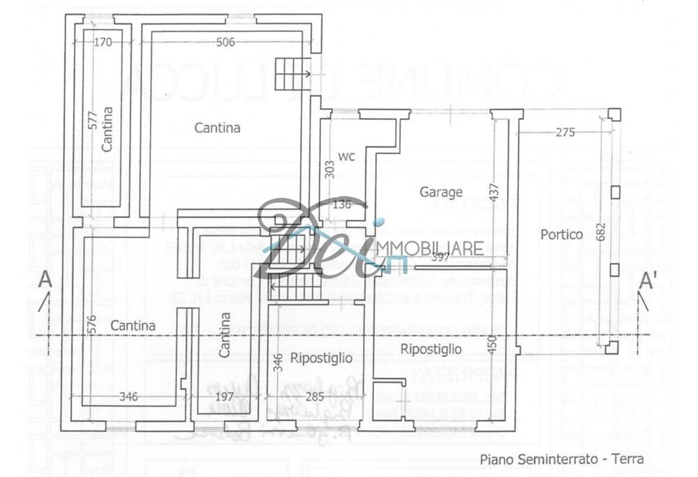 PIANO SEMINTERRATO: Ampia taverna, che comprende una sala da pranzo con cucina a vista, una camera doppia e un bagno con doccia, disimpegno ed ampia zona lavanderia. Completa il piano seminterrato un'ampia cantina pavimentata divisa in quattro vani.